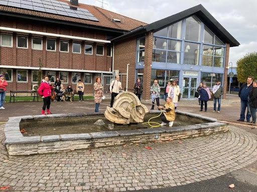 Edithforce arbetar med återställa skulpturen Vågrörelse av Folke Truedsson i Åstorp.